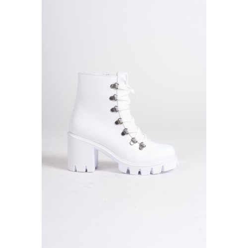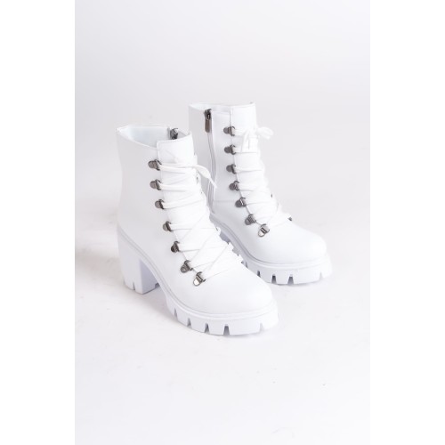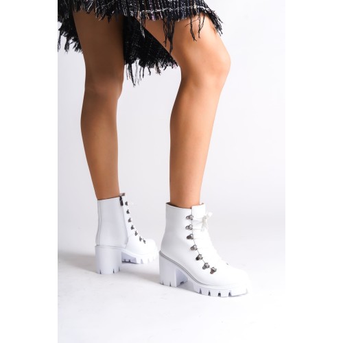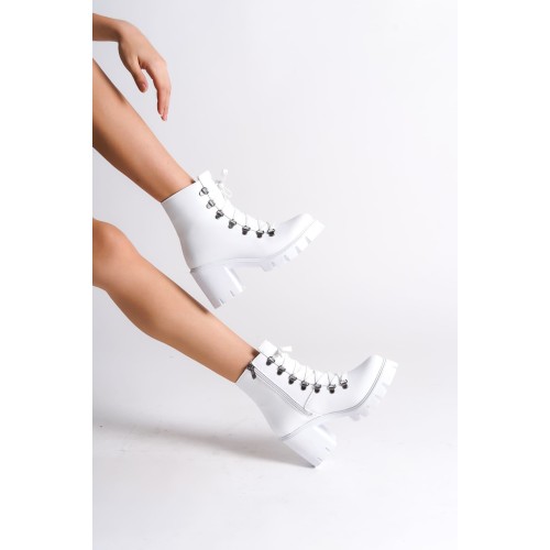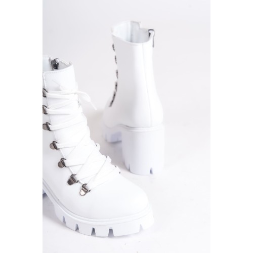 EMMA Bağcıklı Fermuarlı Ortopedik Taban Topuklu Kadın Bot CBT - Beyaz