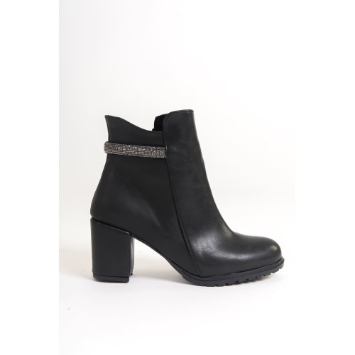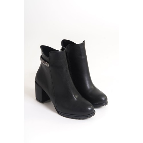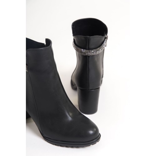 LIA Fermuarlı Ortopedik Taban Taşlı Topuklu Kadın Bot CST - Siyah