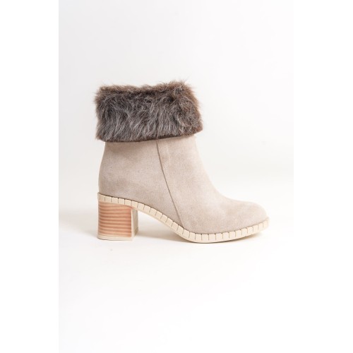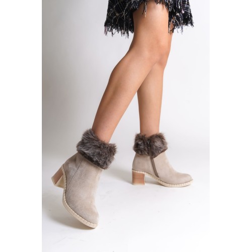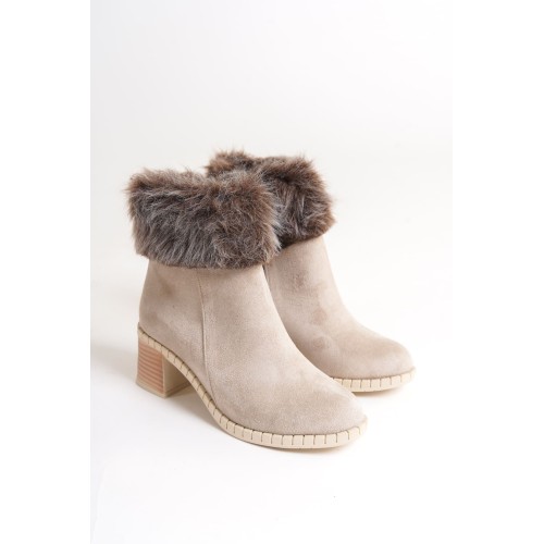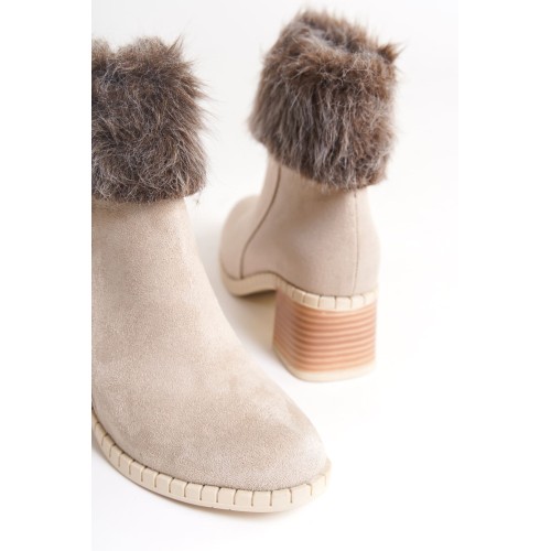 JULIA Fermuarlı Ortopedik Taban Tüylü Topuklu Süet Kadın Bot SKT - Krem