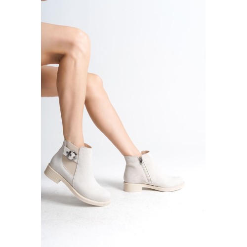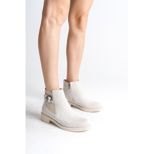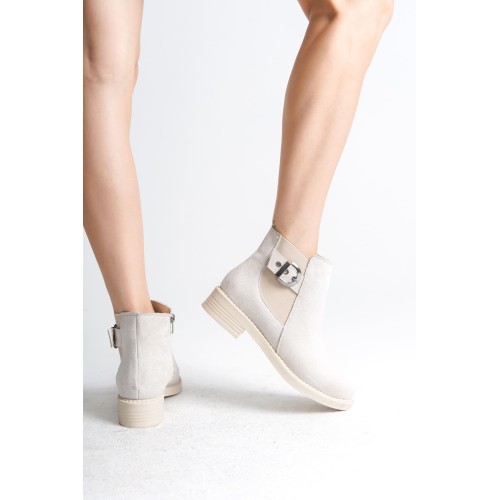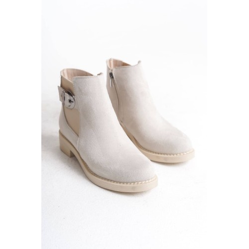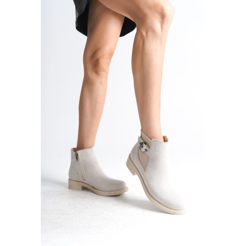 LUNA Fermuarlı Lastikli Ortopedik Taban Topuklu Süet Kadın Bot SKT - Krem