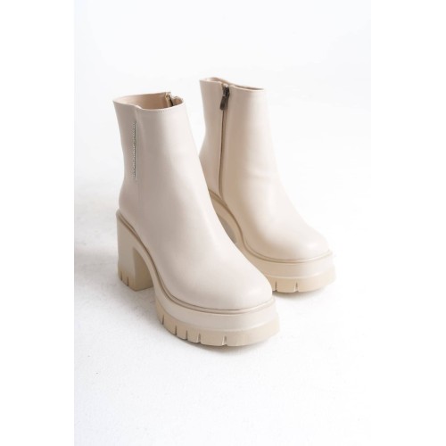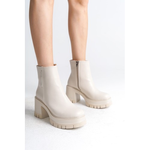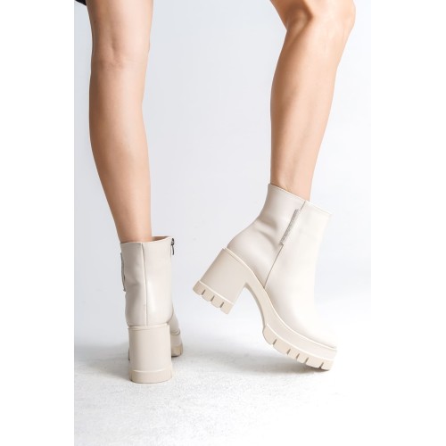 LISSE Fermuarlı Ortopedik Taban Kalın Topuklu Kadın Bot CKT - Krem