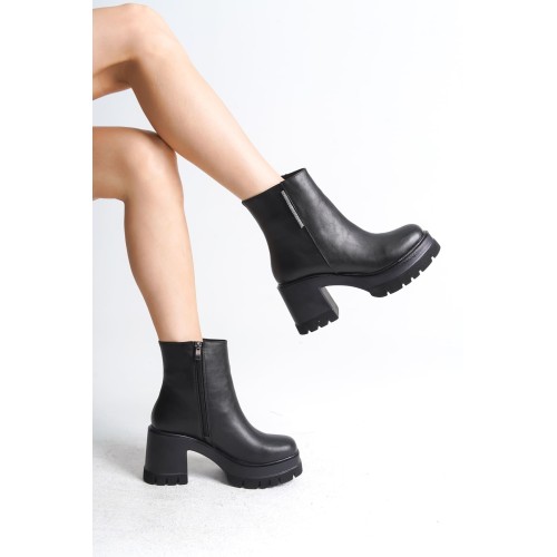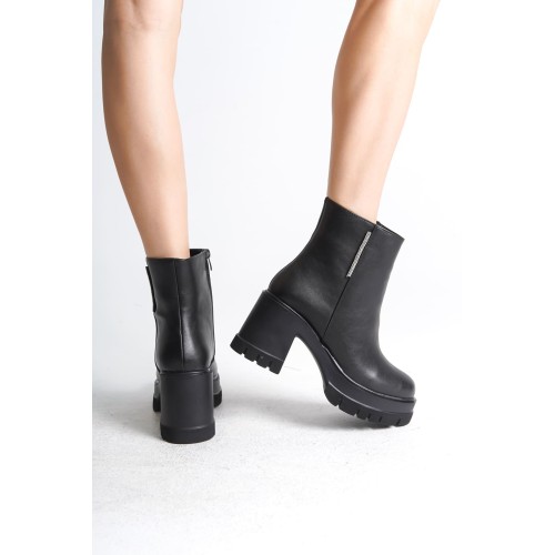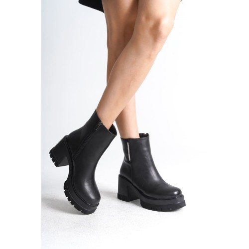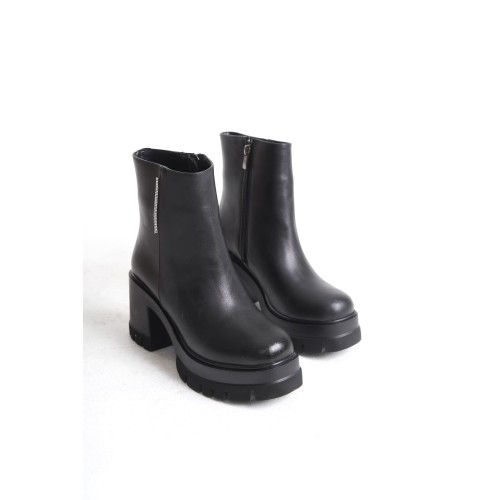 LISSE Fermuarlı Ortopedik Taban Kalın Topuklu Kadın Bot CST - Siyah