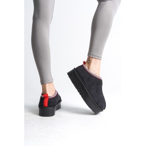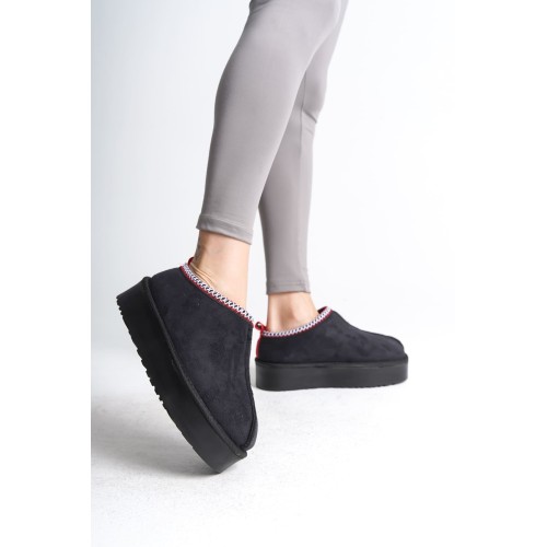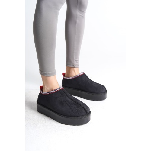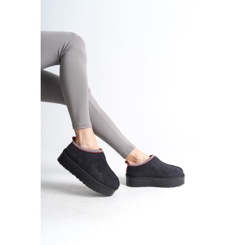 LEILA Bağcıksız Düz ve Kalın Taban İçi Kürklü Kısa Süet Kadın Bot SST - Siyah