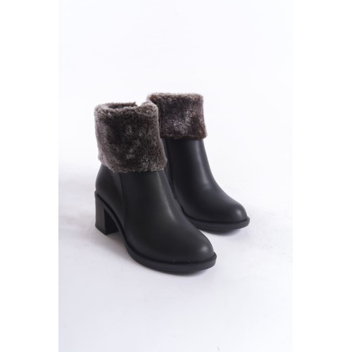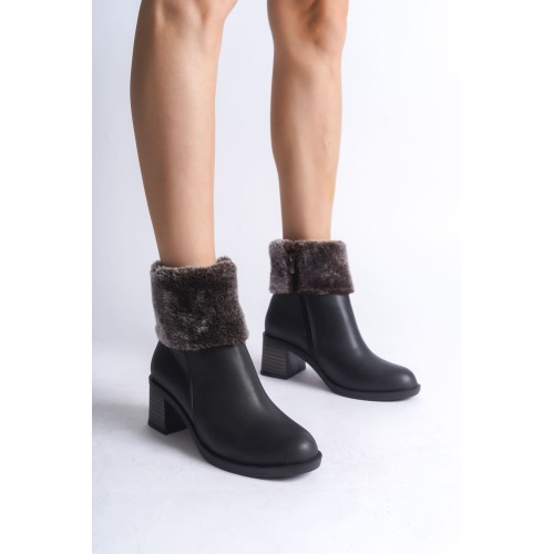 KATYA Fermuarlı Ortopedik Taban Topuklu Kürk DetaylıKadın Bot CST - Siyah