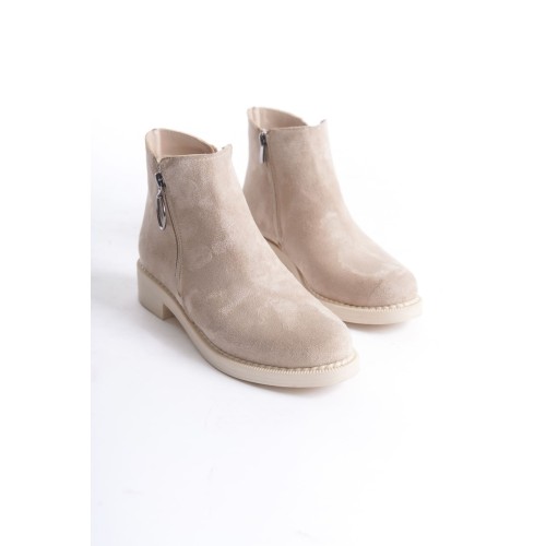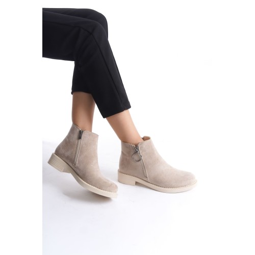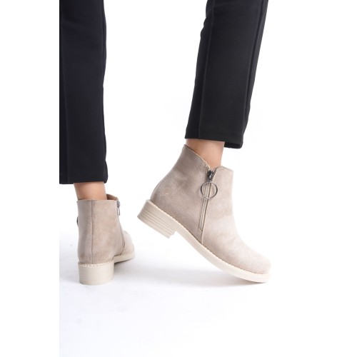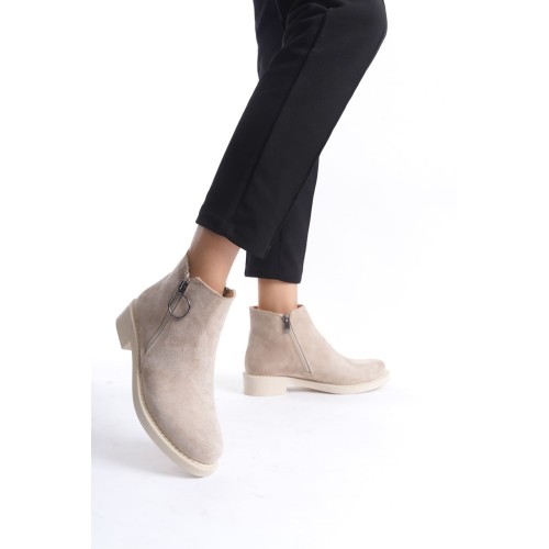 MARGARET Fermuarlı Ortopedik Taban Topuklu Süet Kadın Bot STT - Ten