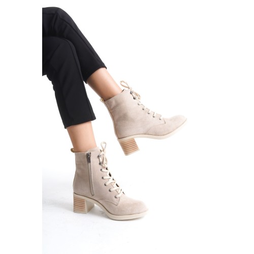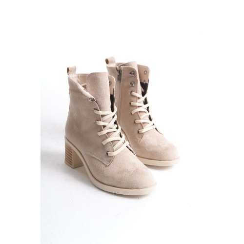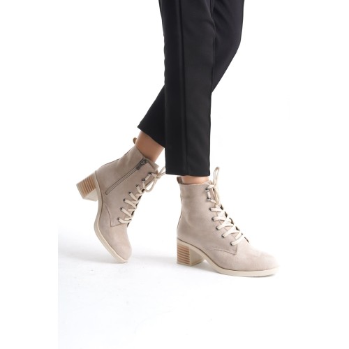 LENA Bağcıklı Fermuarlı Ortopedik Taban Topuklu Süet Kadın Bot STT - Ten