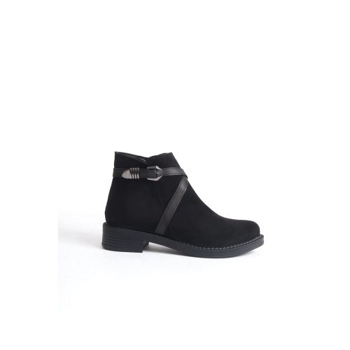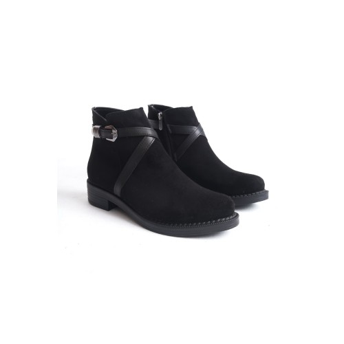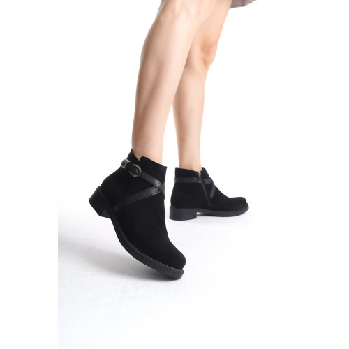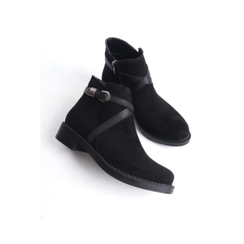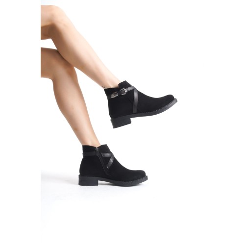 ALMILA Fermuarlı Lastikli Ortopedik Taban Topuklu Süet Kadın Bot SST - Siyah