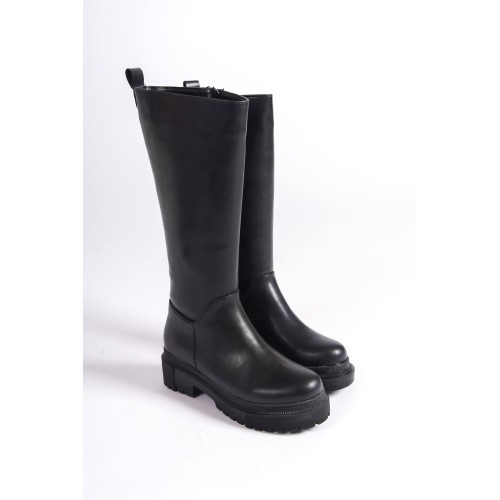 MIRA Bağcıksız Fermuarlı Ortopedik Taban Kadın Çizme CST - Siyah