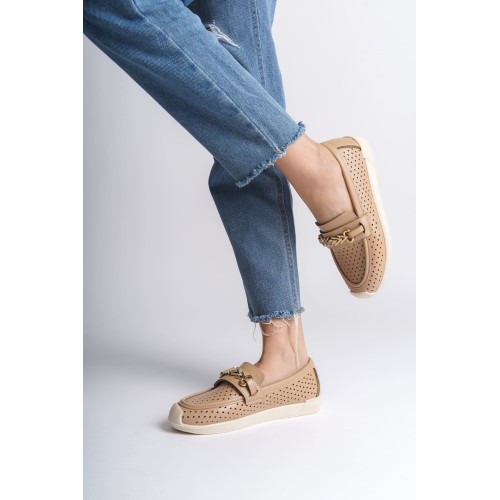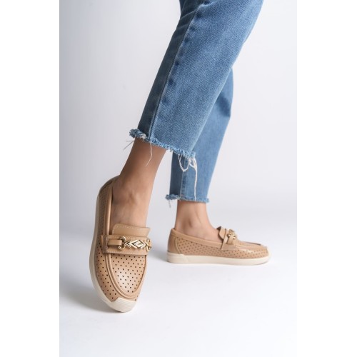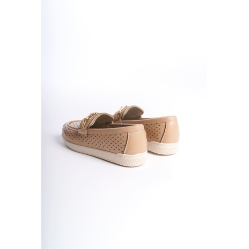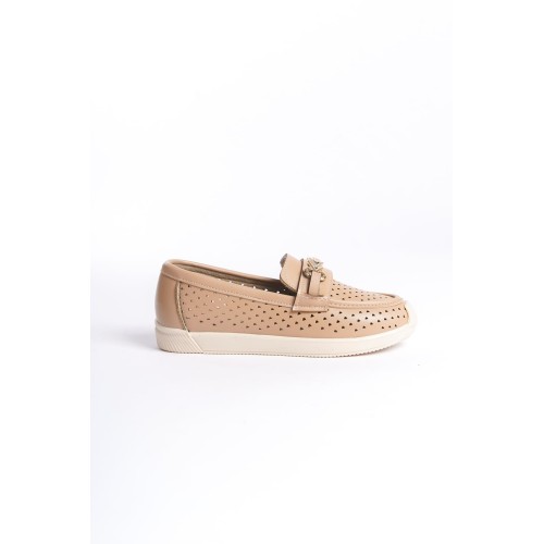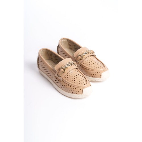 LILY Bağcıksız Ortopedik Rahat Taban Kalp Desenli Kadın Babet Ayakkabı CKT - Ten