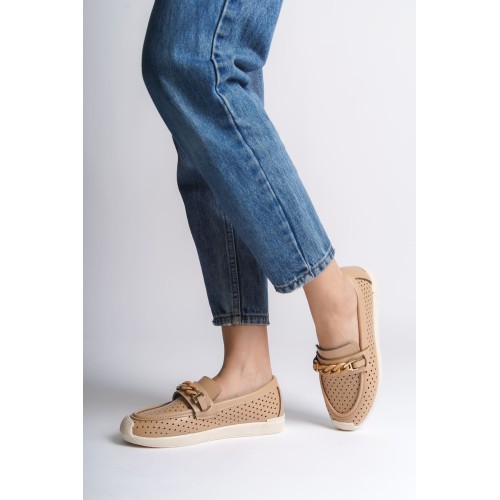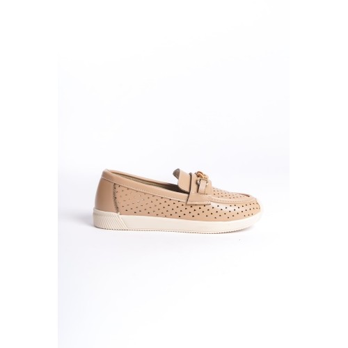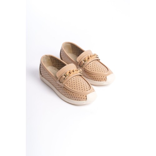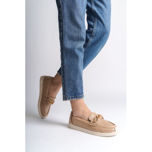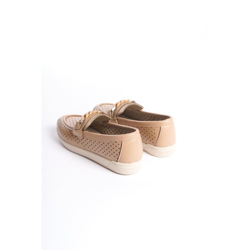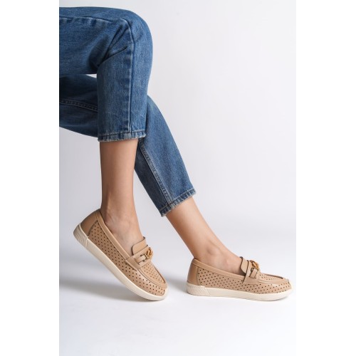 LIZY Bağcıksız Ortopedik Rahat Taban Kalp Desenli Kadın Babet Ayakkabı CKT - Ten