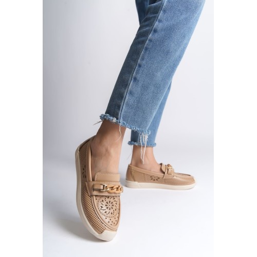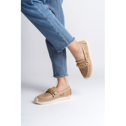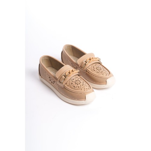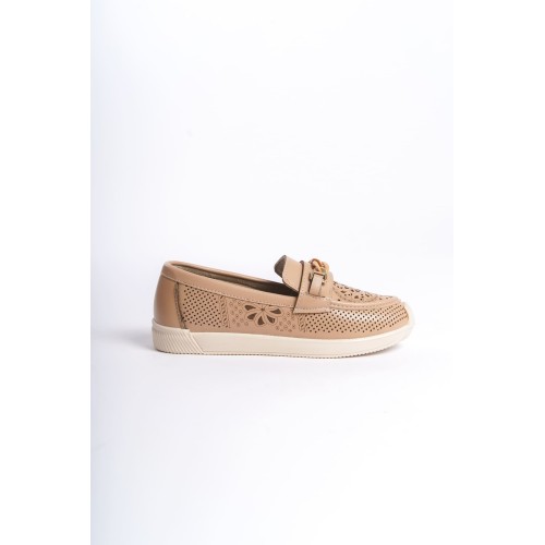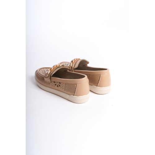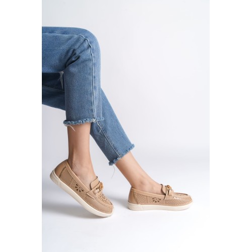 LIZY Bağcıksız Ortopedik Rahat Taban Çiçek Desenli Kadın Babet Ayakkabı CKT - Ten