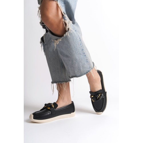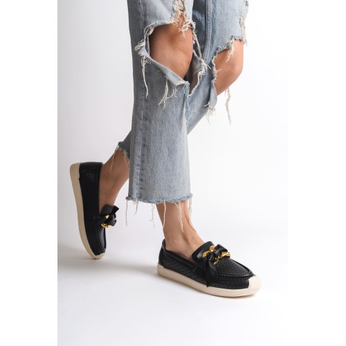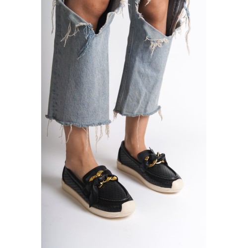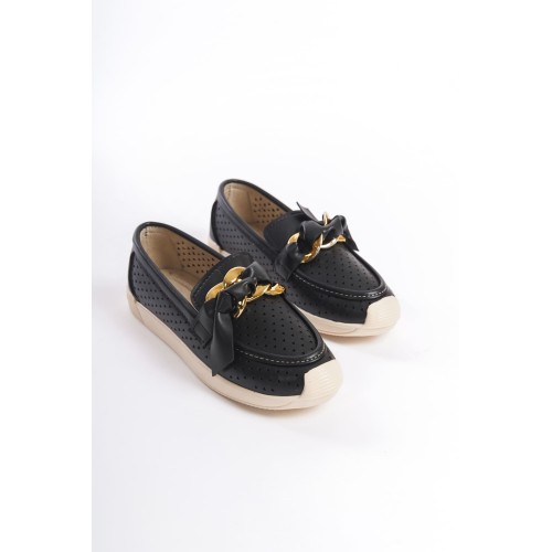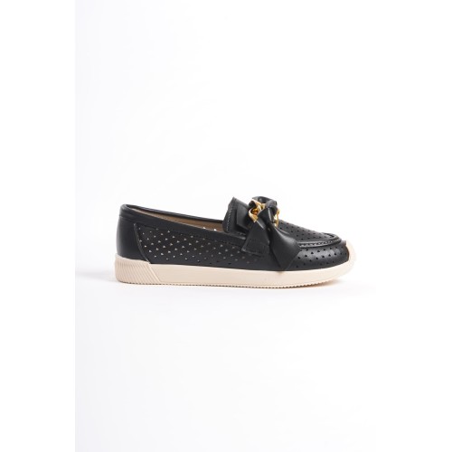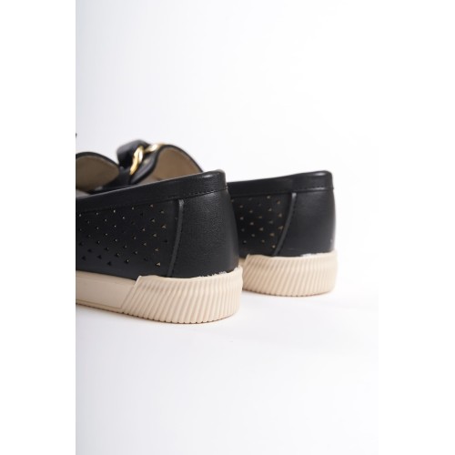 LYDIA Bağcıksız Ortopedik Rahat Taban Kalp Desenli Kadın Babet Ayakkabı CKT - Siyah