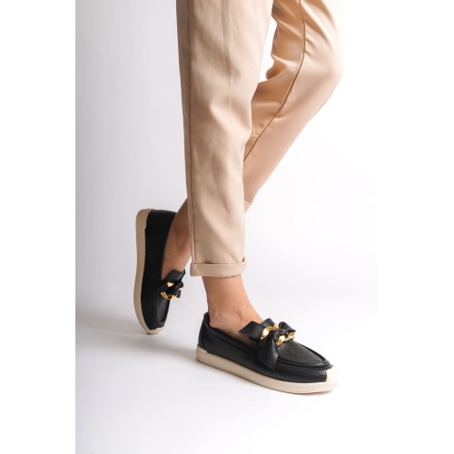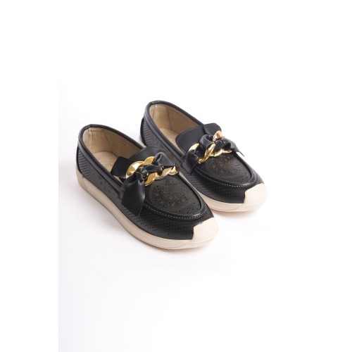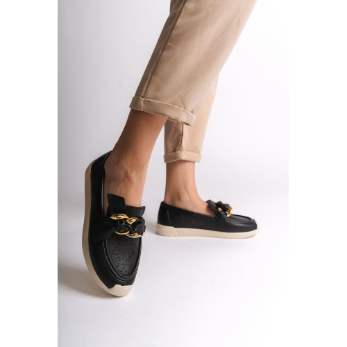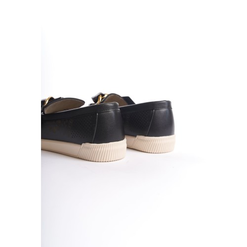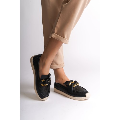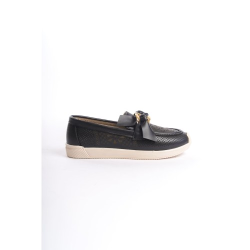 LYDIA Bağcıksız Ortopedik Rahat Taban Çiçek Desenli Kadın Babet Ayakkabı CKT - Siyah