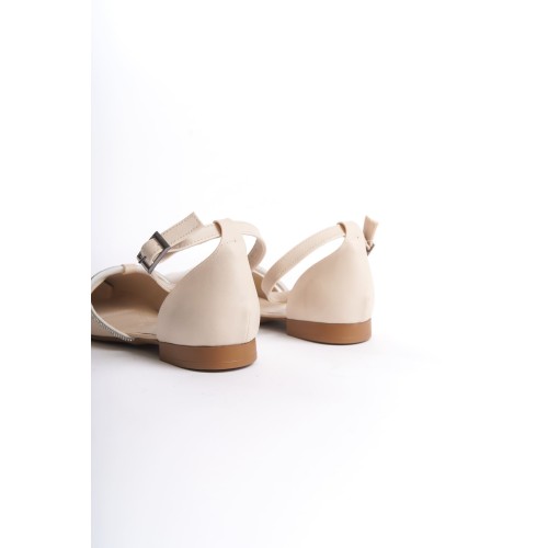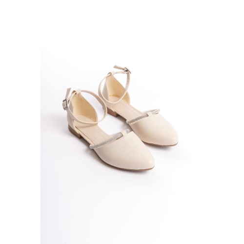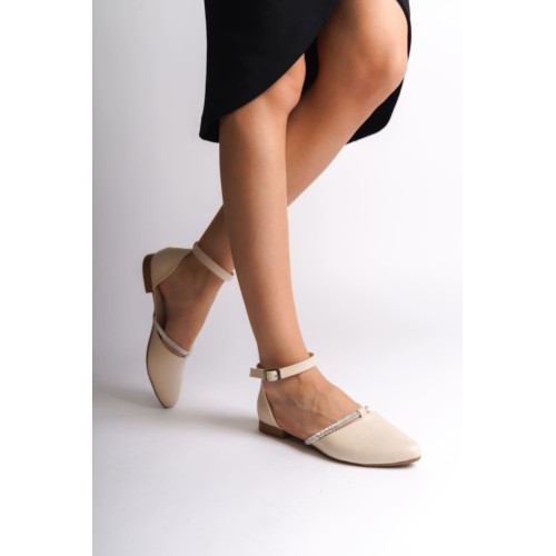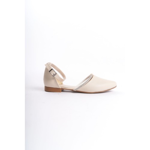 MONICA Tokalı Ortopedik Rahat Taban Taş Detaylı Kadın Babet Ayakkabı CKT - Krem