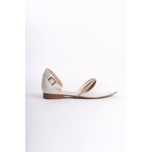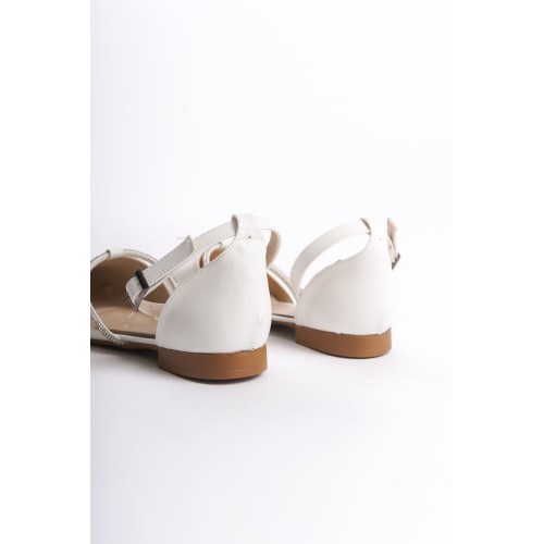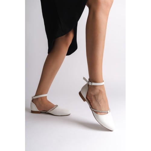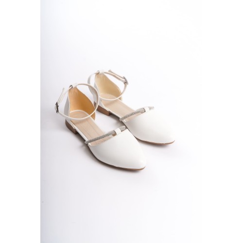 MONICA Tokalı Ortopedik Rahat Taban Taş Detaylı Kadın Babet Ayakkabı CKT - Beyaz