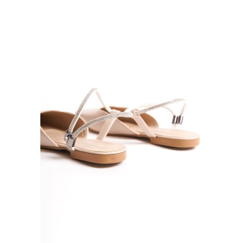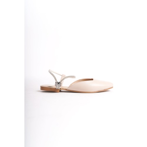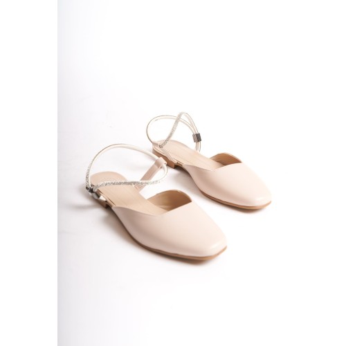 CAROLINE Lastikli Ortopedik Rahat Taban Bilekten Taş Detaylı Kadın Babet Ayakkabı CKT - Krem