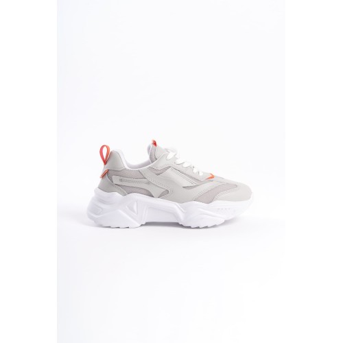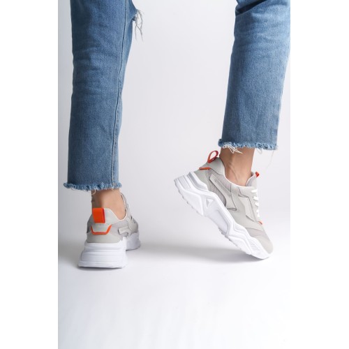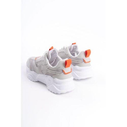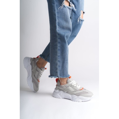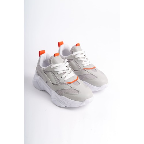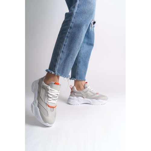 TOKYO Bağcıklı Ortopedik Taban Triko Detaylı Kadın Spor Ayakkabı TBT - Gri/Turuncu