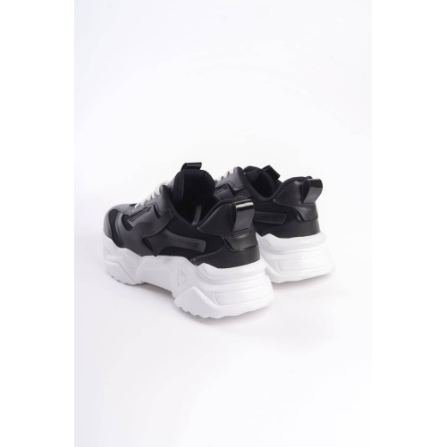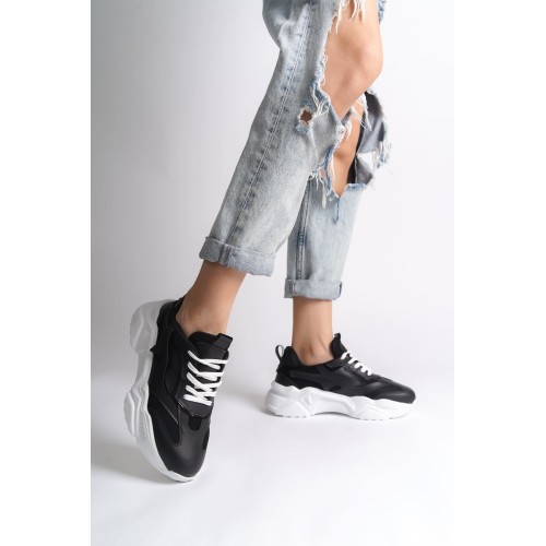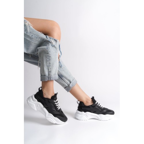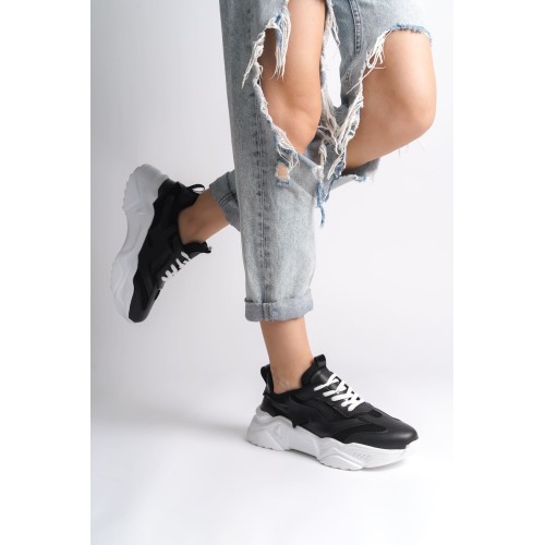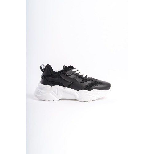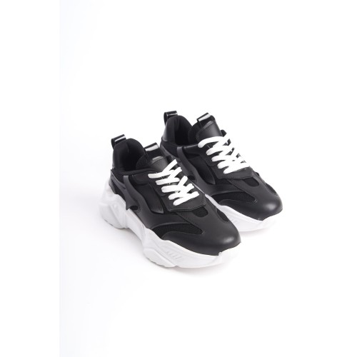 TOKYO Bağcıklı Ortopedik Taban Triko Detaylı Kadın Spor Ayakkabı TBT - Siyah