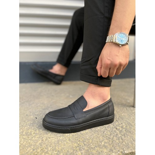 JY180 Estilo X Bağcıksız Cilt Erkek Günlük Spor Klasik Ayakkabı CST - Siyah
