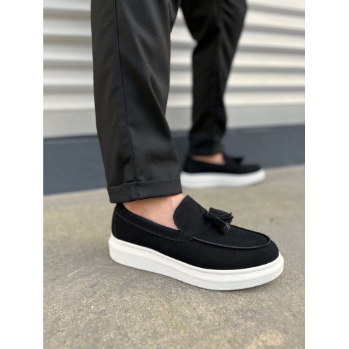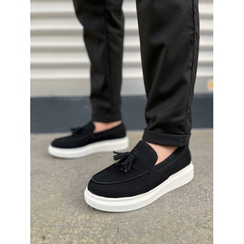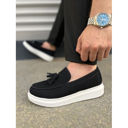 JY154 Blaze Bağcıksız Püsküllü Süet Erkek Günlük Spor Klasik Ayakkabı SBT - Siyah