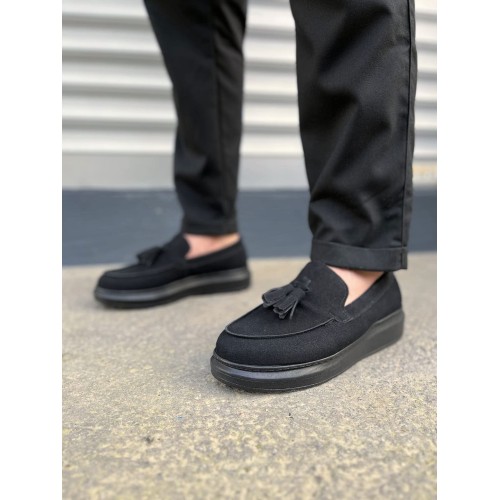 JY154 Blaze Bağcıksız Püsküllü Süet Erkek Günlük Spor Klasik Ayakkabı SST - Siyah