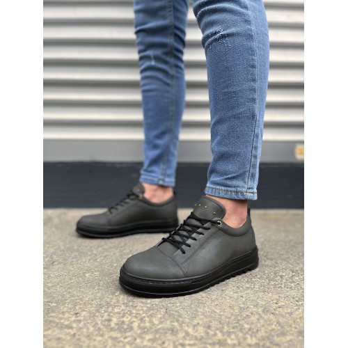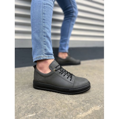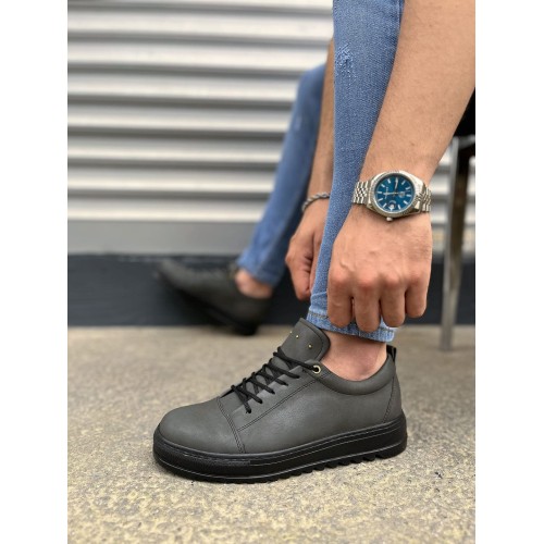 JY152 Cool Bağcıklı Cilt Erkek Günlük Spor Klasik Ayakkabı CST - Füme