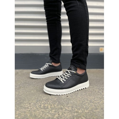 JY152 Cool Bağcıklı Cilt Erkek Günlük Spor Klasik Ayakkabı CBT - Siyah