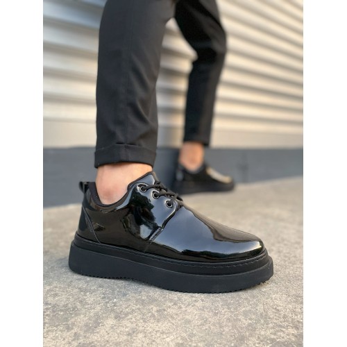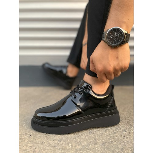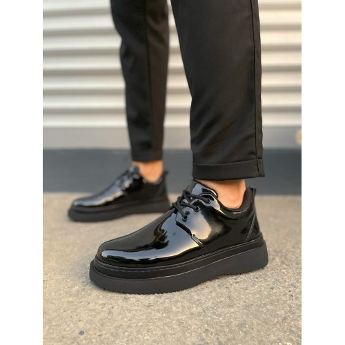 JYx03 Luxor Bağcıklı Rugan Erkek Günlük Spor Klasik Ayakkabı RST - Siyah
