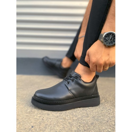 JYx03 Luxor Bağcıklı Cilt Erkek Günlük Spor Klasik Ayakkabı CST - Siyah